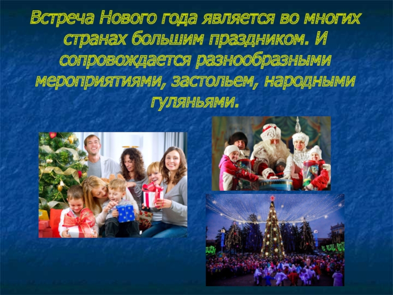 Слайд 4Встреча Нового года является во многих странах большим праздником. И сопровождается