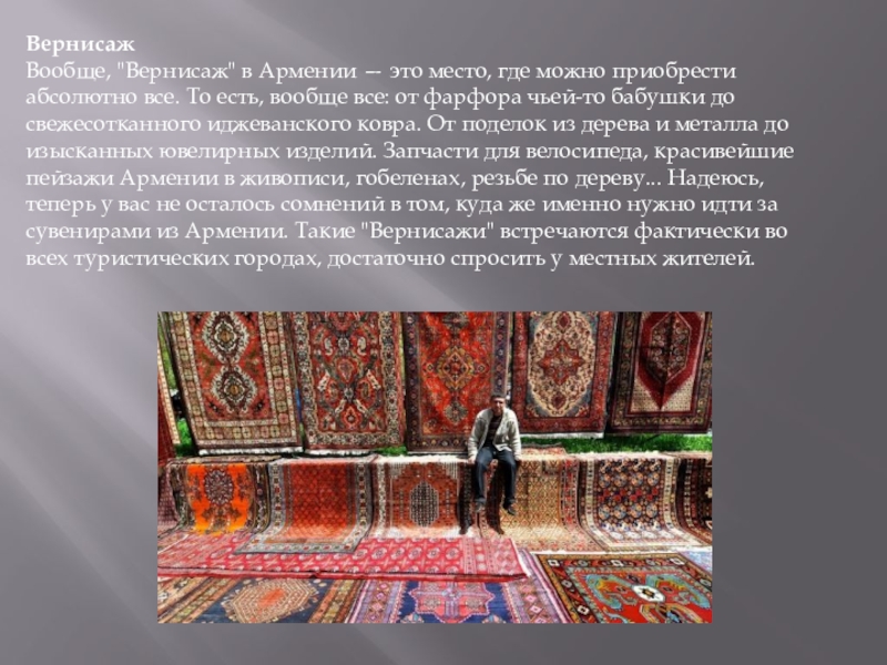 Вообще, "Вернисаж" в Армении — это место, где можно приобрести абсолютно