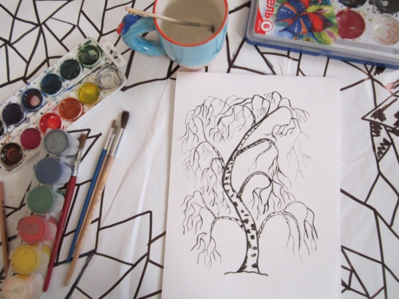 Береза, как и любое дерево рисуется в