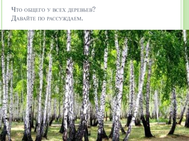 Слайд 2Что общего у всех деревьев? Давайте по рассуждаем.