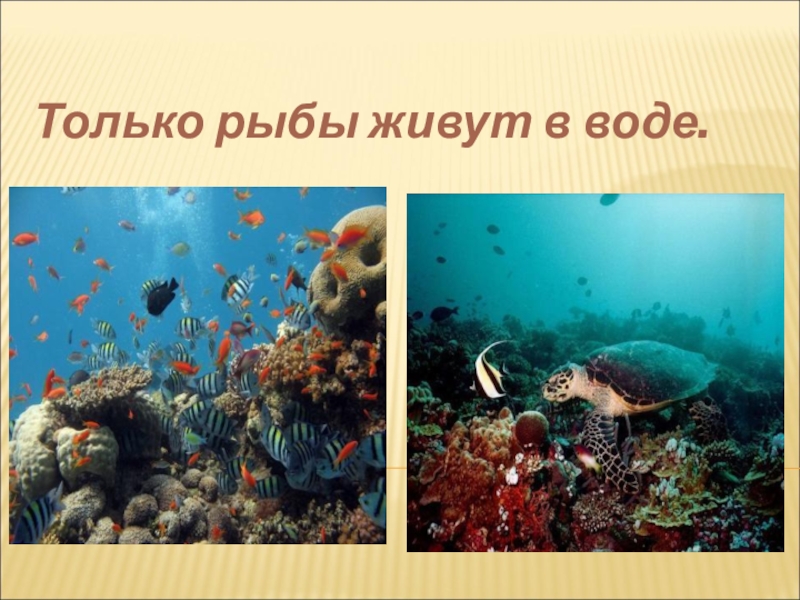 Слайд 2Только рыбы живут в воде.