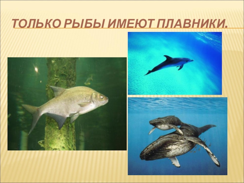 Слайд 4ТОЛЬКО РЫБЫ ИМЕЮТ ПЛАВНИКИ.
