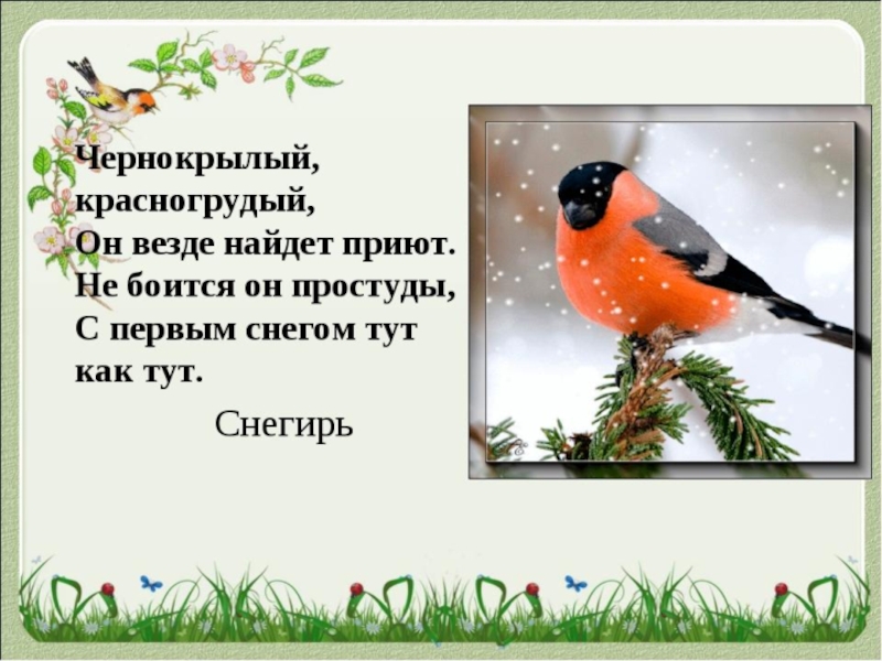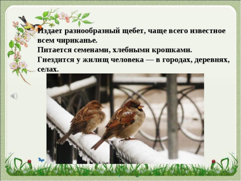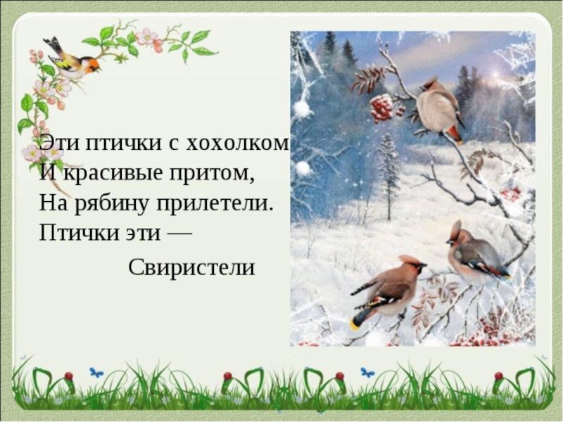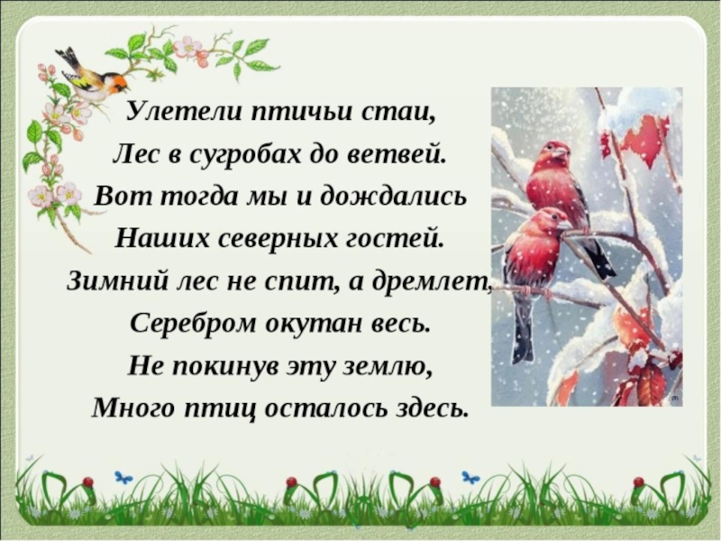 Презентация, доклад для дошкольников на тему Зимующие птицы