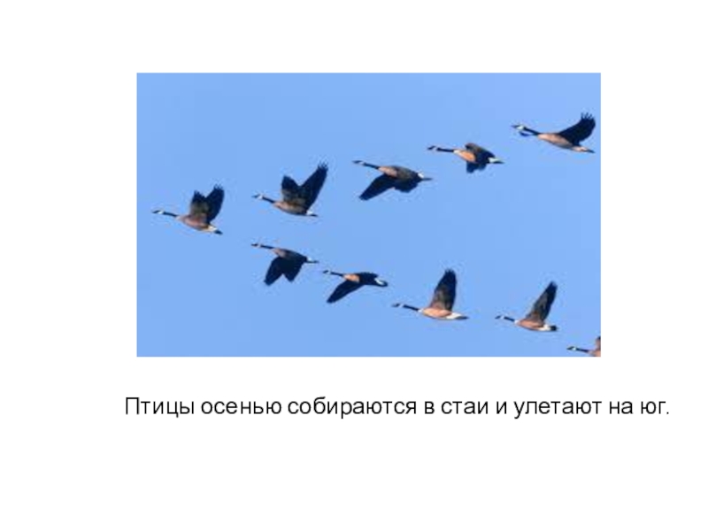 Слайд 7Птицы осенью собираются в стаи и улетают на юг.