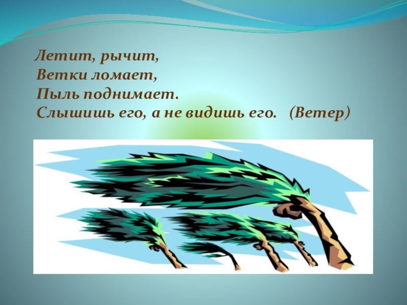 Слайд 5 Летит, рычит, Ветки ломает, Пыль поднимает. Слышишь его, а не видишь его.