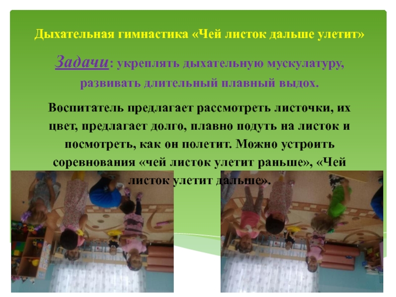 Слайд 8Дыхательная гимнастика «Чей листок дальше улетит»