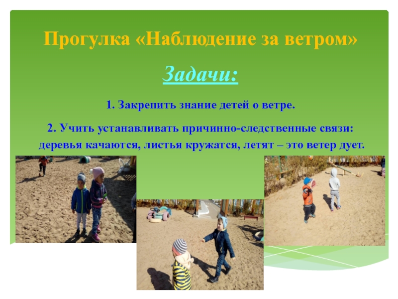 причинно-следственные связи: деревья качаются, листья кружатся, летят – это ветер дует.