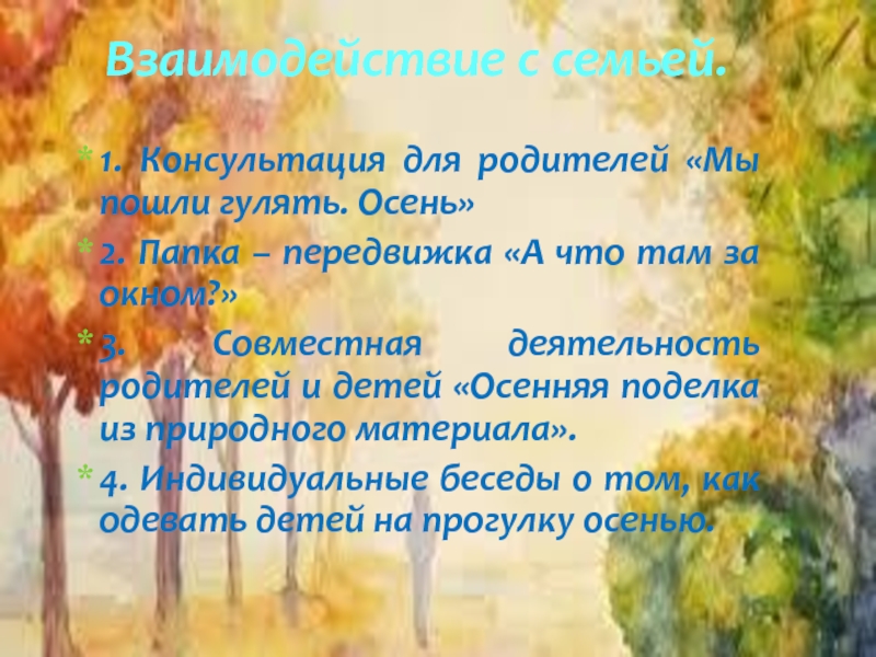 1. Консультация для родителей «Мы пошли гулять. Осень»
