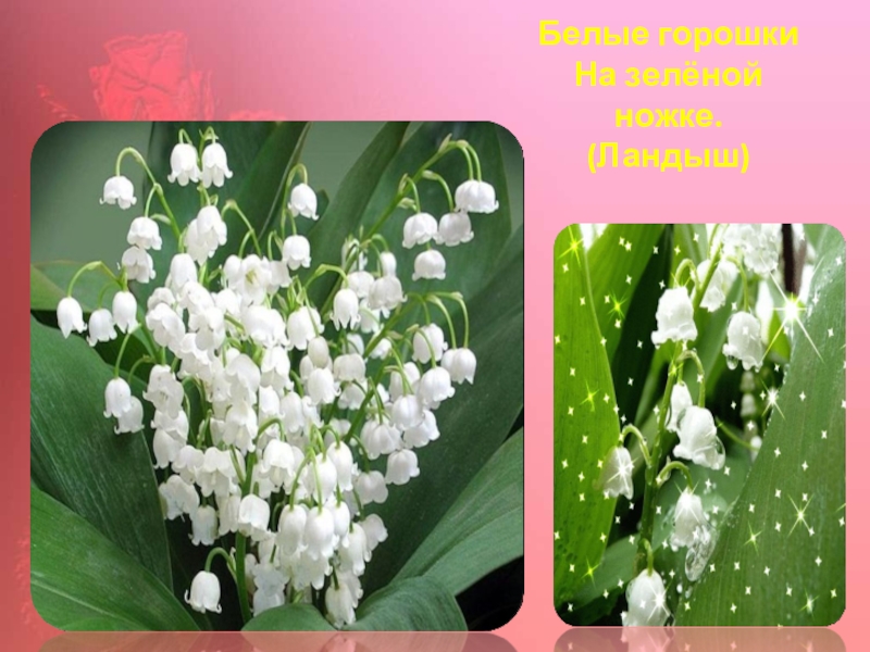 Слайд 6Белые горошки На зелёной ножке. (Ландыш)