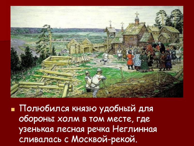 Слайд 4Полюбился князю удобный для обороны холм в том месте, где узенькая