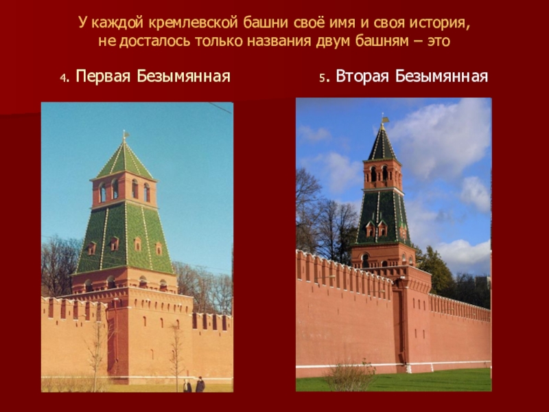 Слайд 14У каждой кремлевской башни своё имя и своя история,
