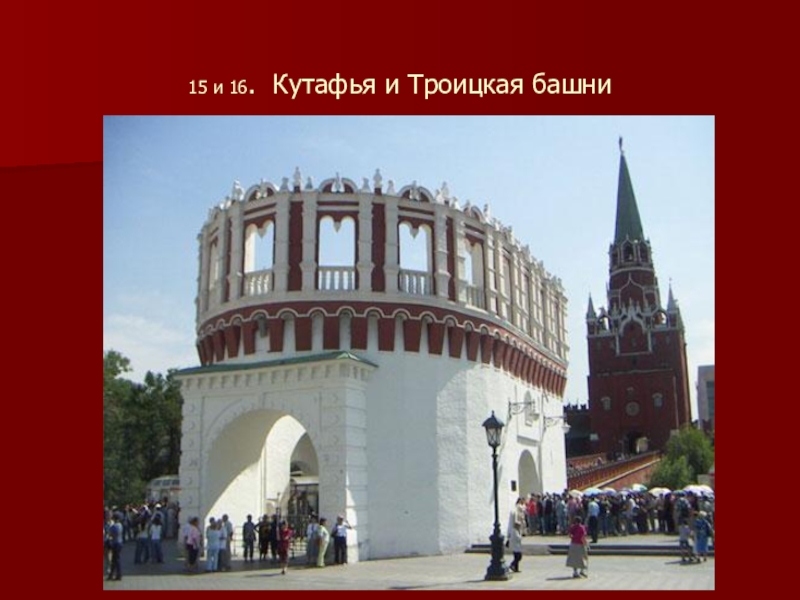 Слайд 2515 и 16. Кутафья и Троицкая башни