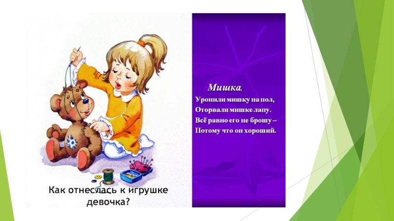 Слайд 2Как отнеслась к игрушке девочка?