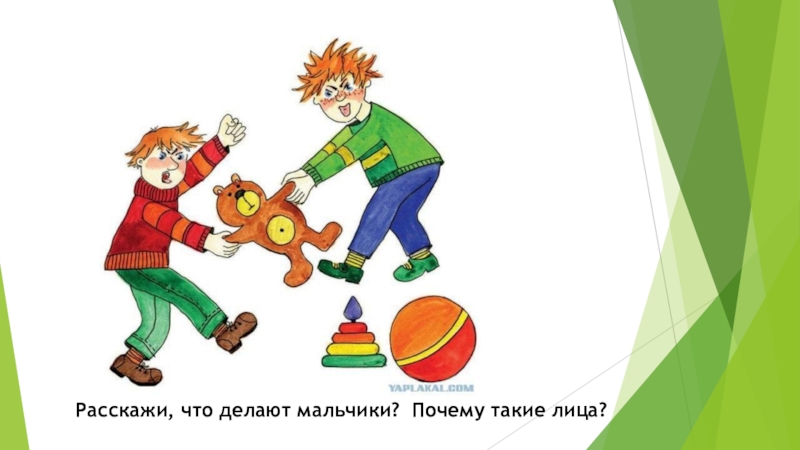 Слайд 3Расскажи, что делают мальчики? Почему такие лица?
