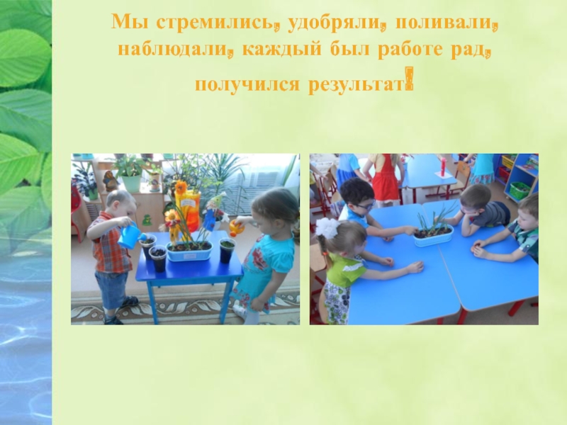 Слайд 6Мы стремились, удобряли, поливали, наблюдали, каждый был работе рад, получился результат!