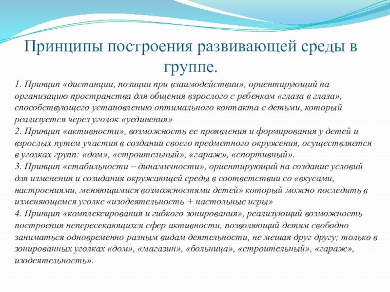 Слайд 6Принципы построения развивающей среды в группе.