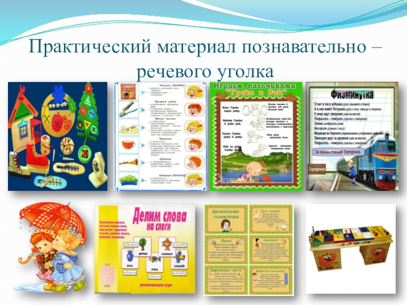 Слайд 5Практический материал познавательно – речевого уголка