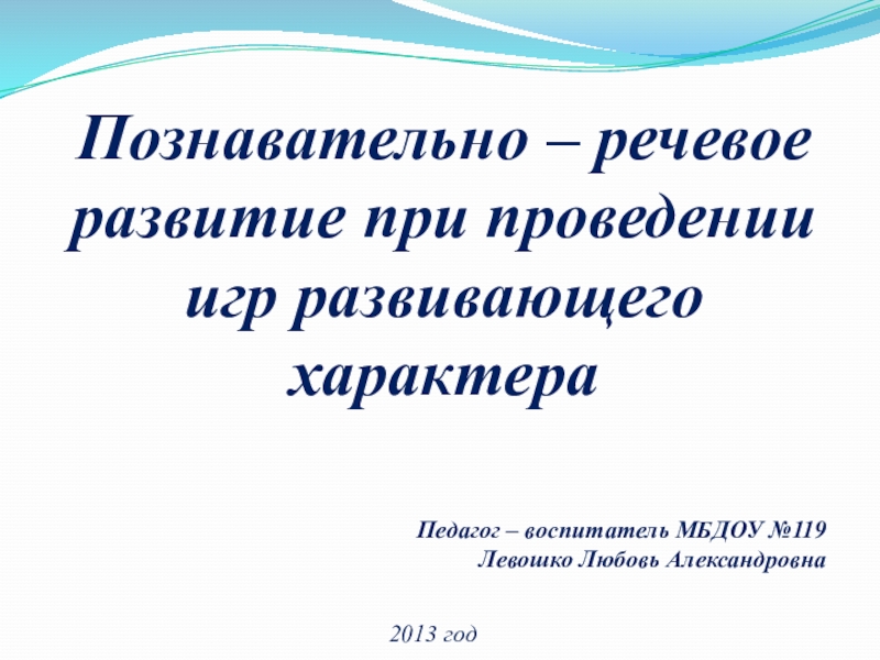 Слайд 1Познавательно – речевое развитие при проведении игр развивающего характера