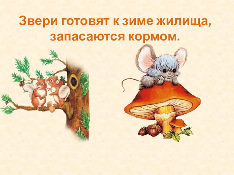 Слайд 9Звери готовят к зиме жилища, запасаются кормом.