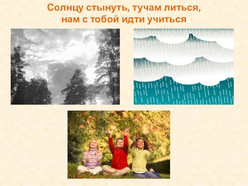 Слайд 5Солнцу стынуть, тучам литься, нам с тобой идти учиться