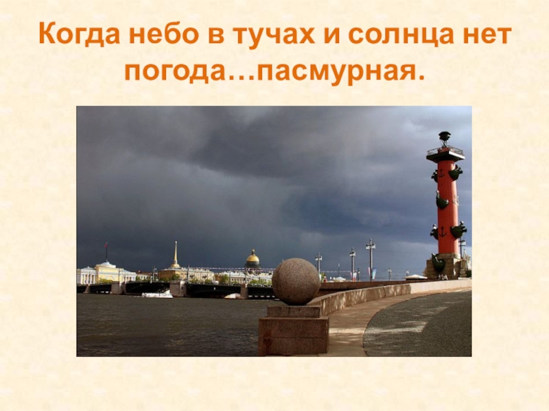 Слайд 14Когда небо в тучах и солнца нет погода…пасмурная.