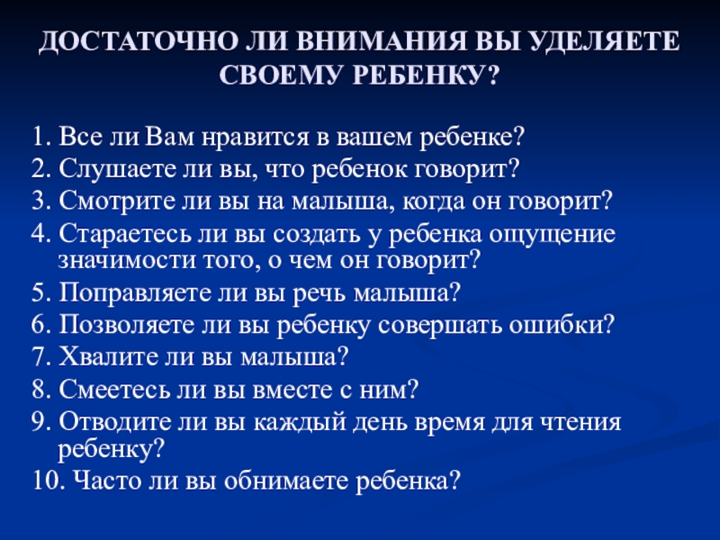 Слайд 13ДОСТАТОЧНО ЛИ ВНИМАНИЯ ВЫ УДЕЛЯЕТЕ СВОЕМУ РЕБЕНКУ?