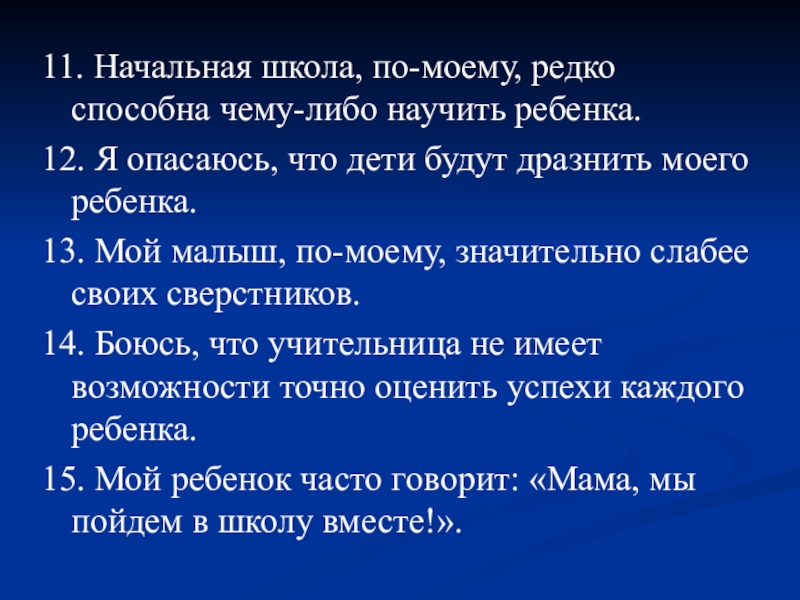 15. Мой ребенок часто говорит: «Мама, мы пойдем в школу вместе!».
