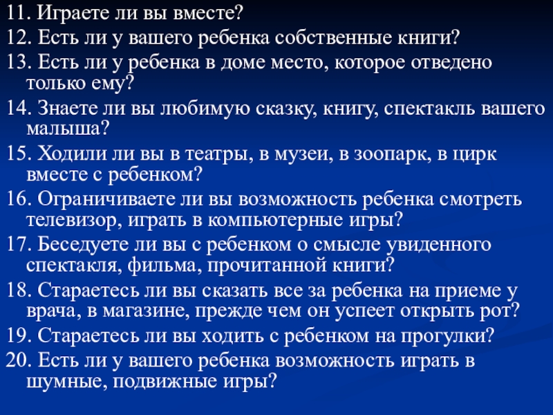 9. Отводите ли вы каждый день время для чтения ребенку?
