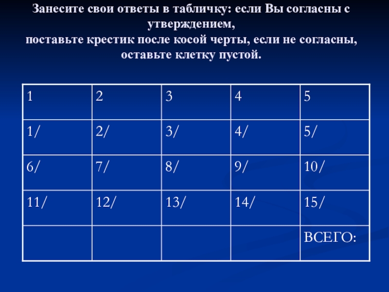 Слайд 10Занесите свои ответы в табличку: если Вы согласны с утверждением,