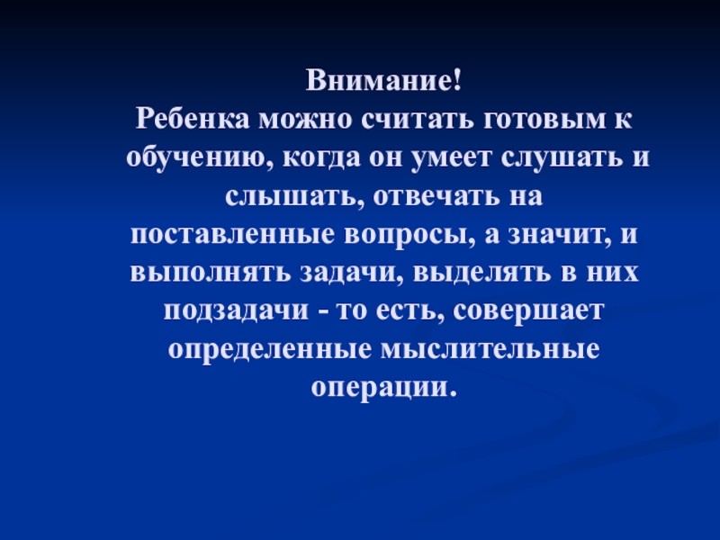 Ребенка можно считать готовым к обучению, когда он умеет слушать