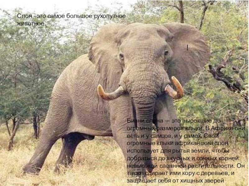 Слон –это самое большое сухопутное животное.