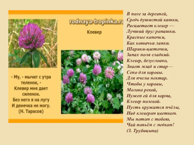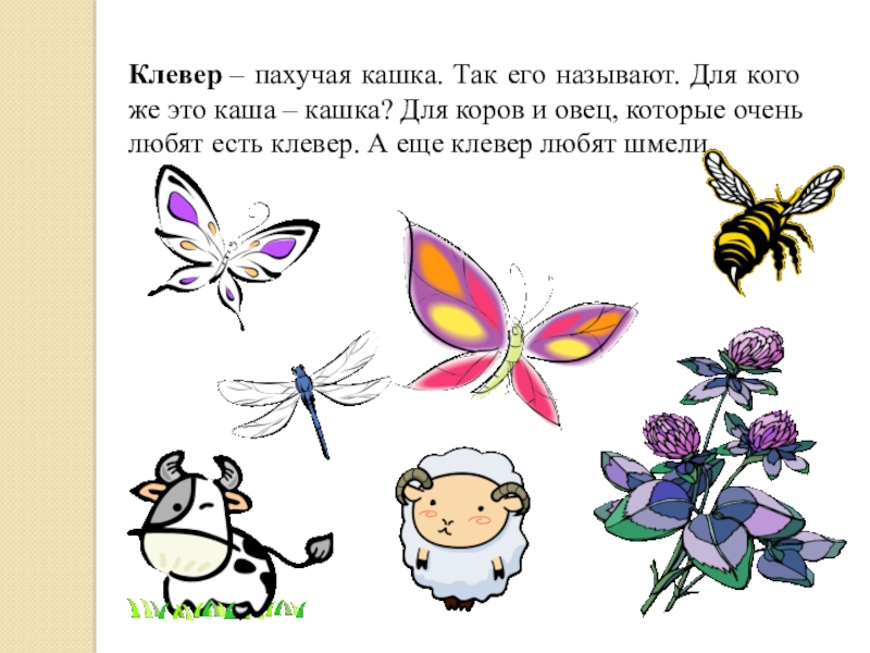 Слайд 7Клевер – пахучая кашка. Так его называют. Для кого же это каша