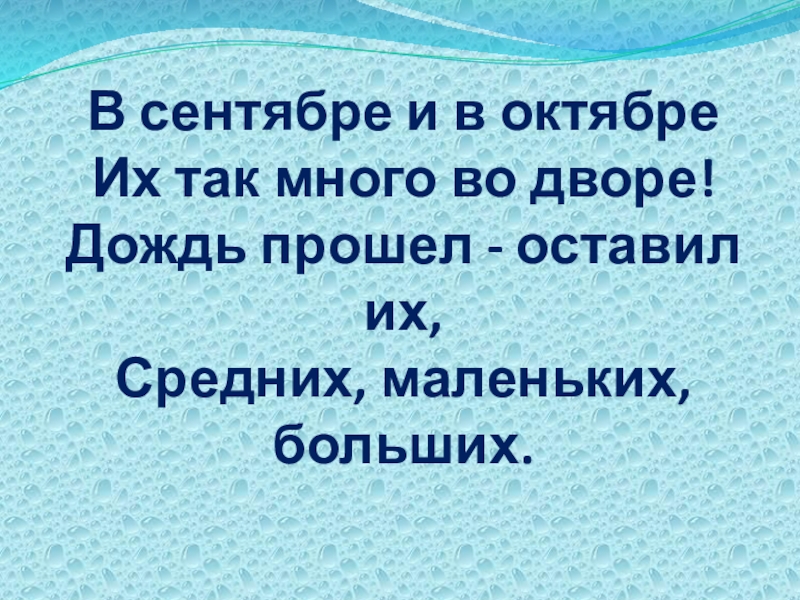 Слайд 33В сентябре и в октябре Их так много во дворе! Дождь прошел -