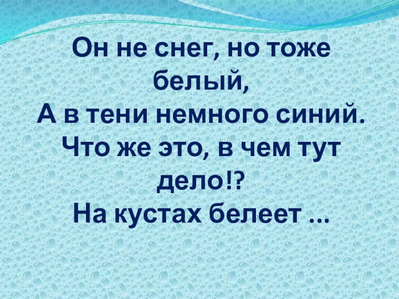 Слайд 37Он не снег, но тоже белый, А в тени немного синий. Что же