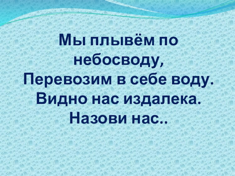 Мы плывём по небосводу, Перевозим в себе воду. Видно нас издалека. Назови нас..