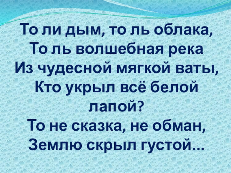 Слайд 39То ли дым, то ль облака, То ль волшебная река Из чудесной мягкой