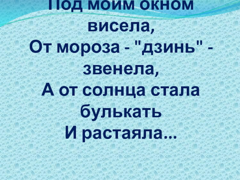 Слайд 21Под моим окном висела, От мороза - "дзинь" - звенела, А от солнца