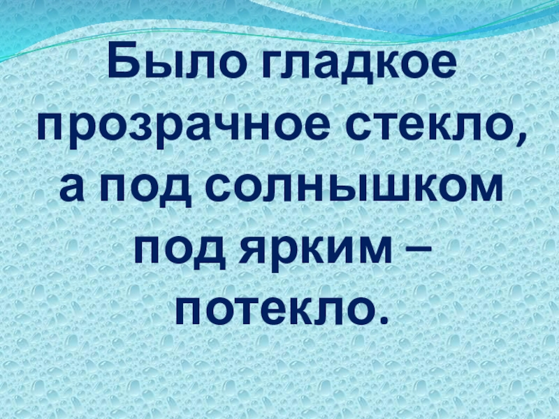 Слайд 19Было гладкое прозрачное стекло, а под солнышком под ярким – потекло.