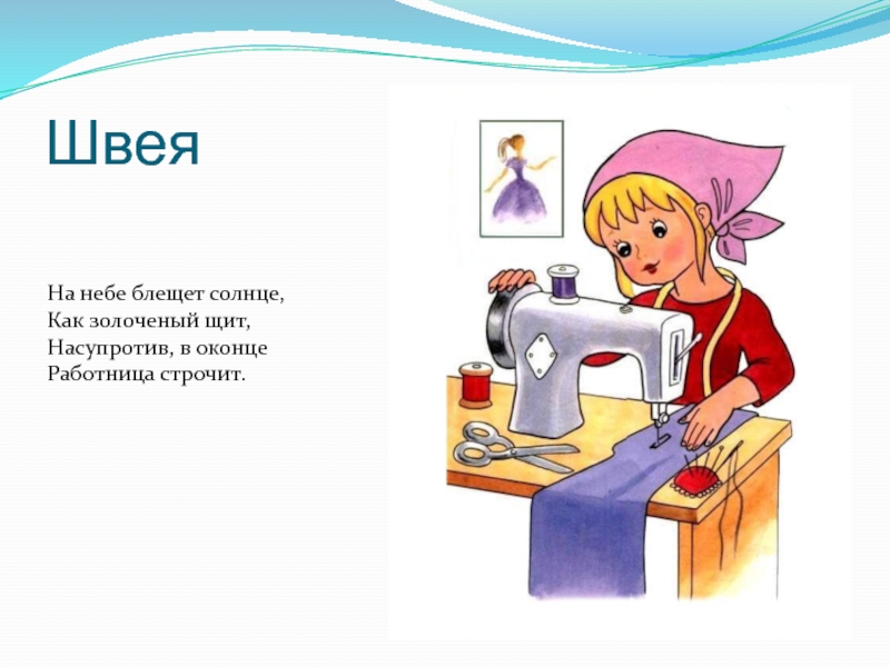 ШвеяНа небе блещет солнце, Как золоченый щит, Насупротив, в оконце Работница строчит.