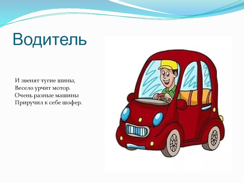 ВодительИ звенят тугие шины, Весело урчит мотор. Очень разные машины Приручил к себе шофер.