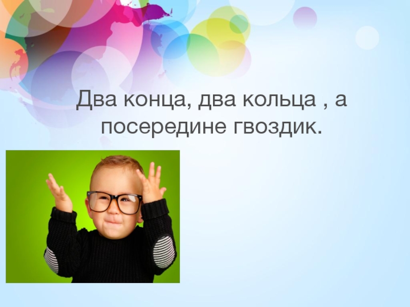 Слайд 2Два конца, два кольца , а посередине гвоздик.
