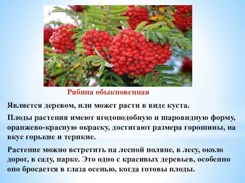 Растение можно встретить на лесной поляне, в лесу, около дорог, в саду, парке. Это одно с красивых деревьев, особенно оно бросается в глаза осенью, когда готовы плоды.