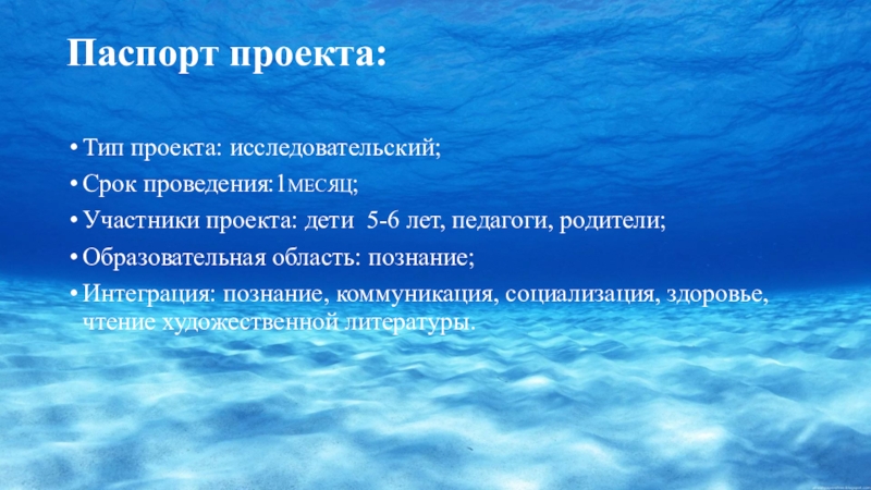 Слайд 2Паспорт проекта: