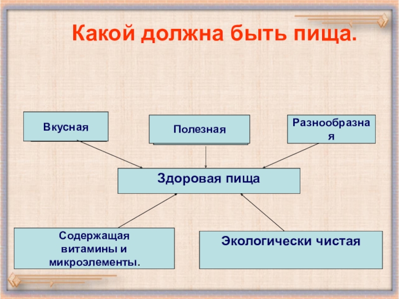 Здоровая, вкусная, полезная, разнообразная, полноценная.