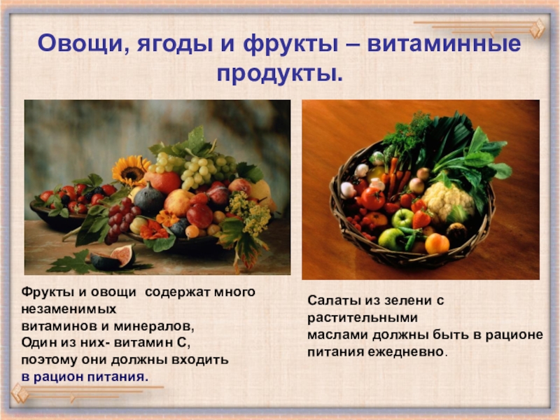 Овощи, ягоды и фрукты – витаминные продукты.
