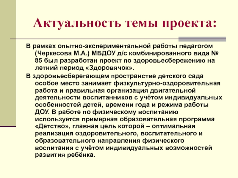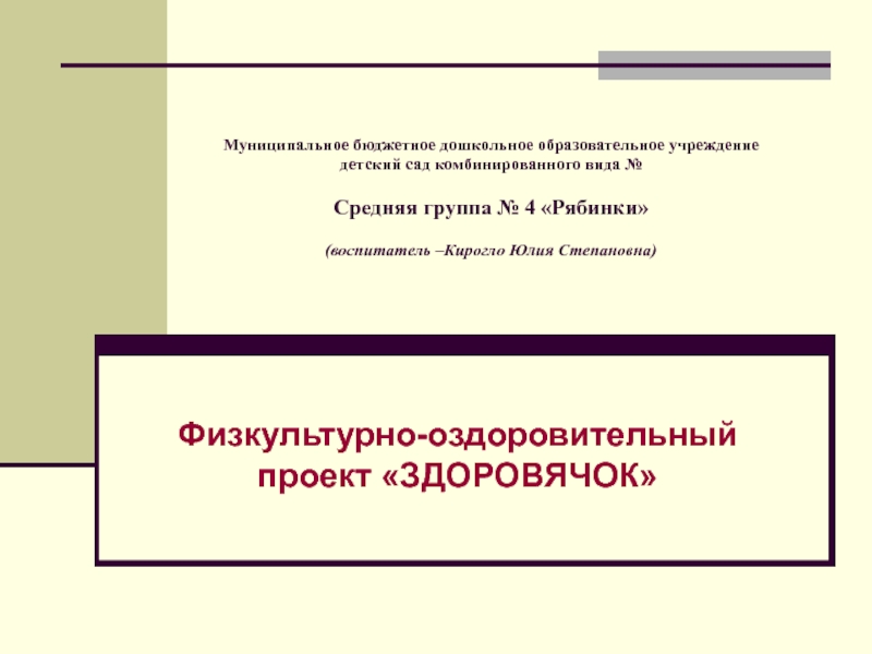 Физкультурно-оздоровительный проект «ЗДОРОВЯЧОК»
