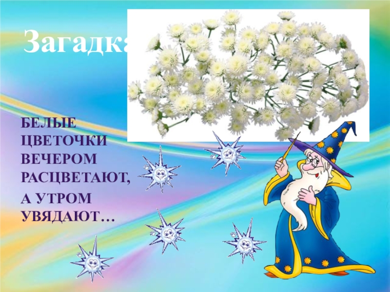 ЗагадкаБелые цветочки вечером расцветают, а утром увядают…