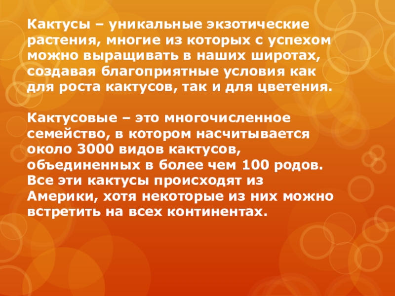 Слайд 2Кактусы – уникальные экзотические растения, многие из которых с успехом можно