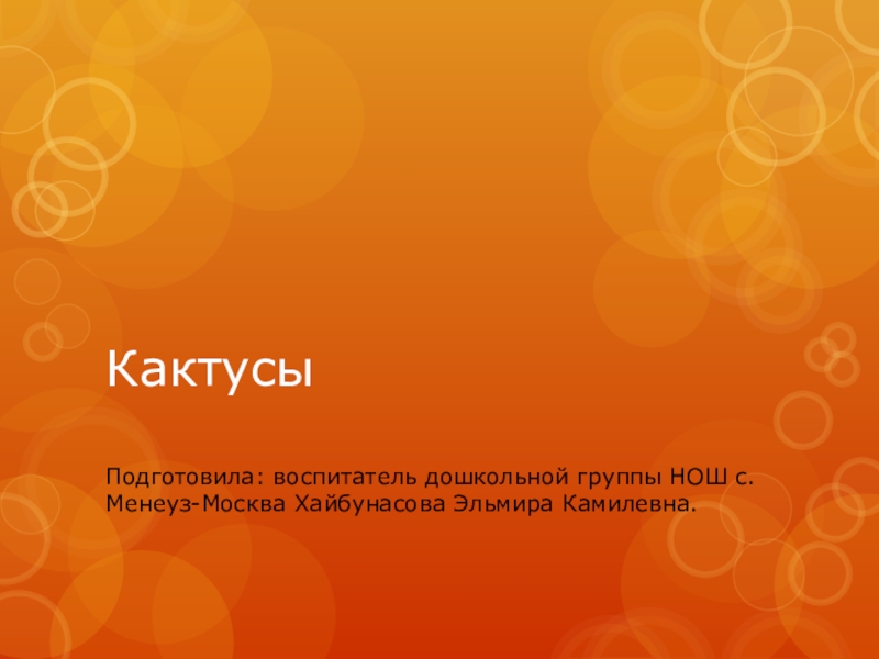 Кактусы Подготовила: воспитатель дошкольной группы НОШ с.Менеуз-Москва Хайбунасова Эльмира Камилевна.
