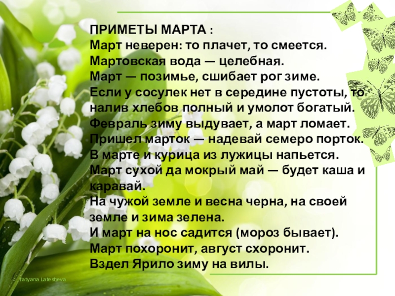 Слайд 6ПРИМЕТЫ МАРТА :